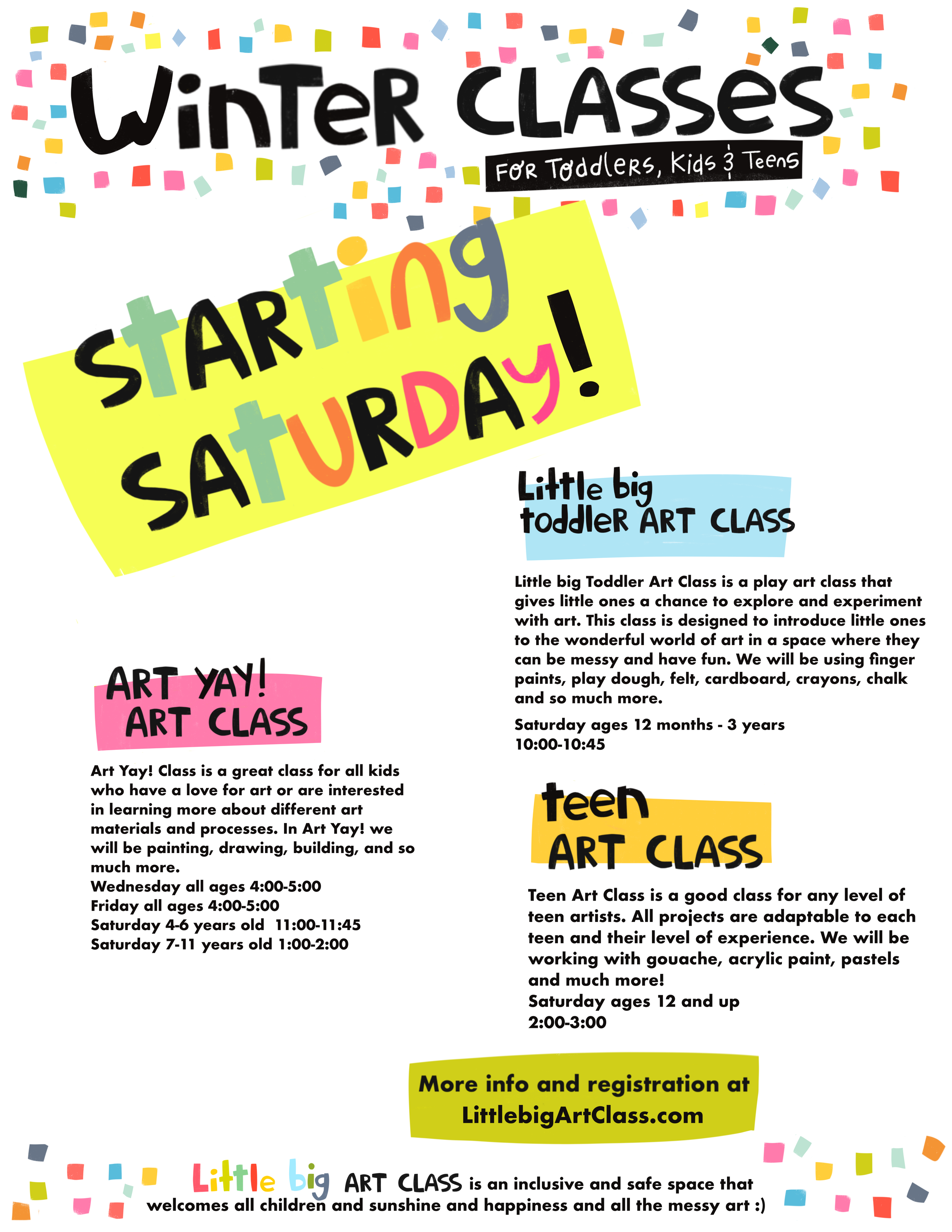click on class name for more information or visit shop Little big Art Classes to register. Registration is now open for: Upcoming Events Sign up here Sign up here Sign up here