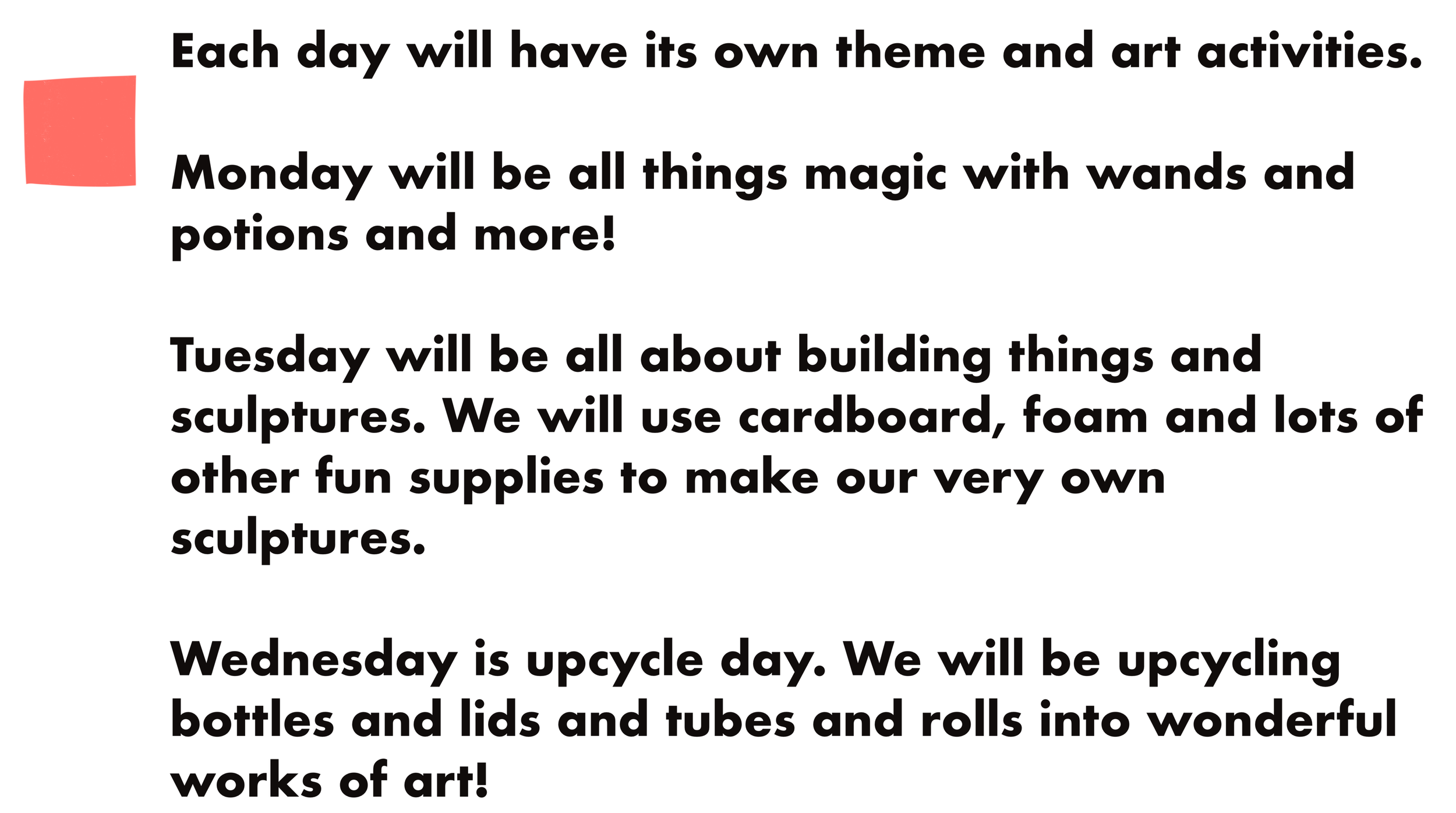 Winter Art Camp is on Monday 2/16, Tuesday 2/17 and Wednesday 2/18 from 9:00-11:30.