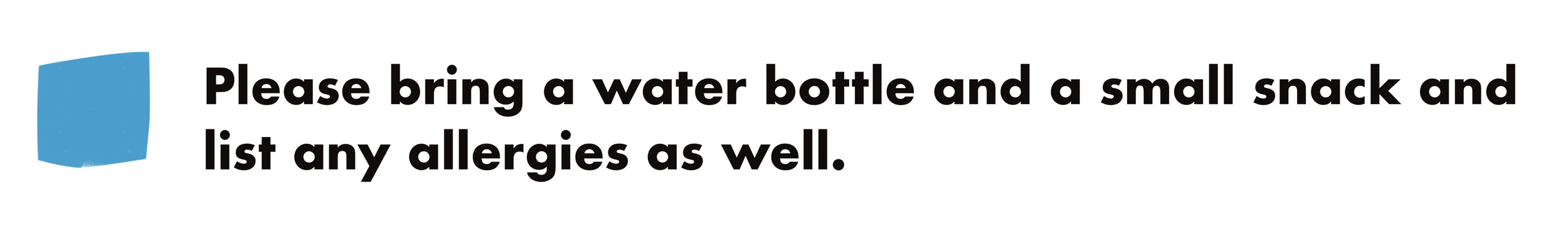 There will be a snack break so please send your child with water and a snack. Also notify us of an allergies.